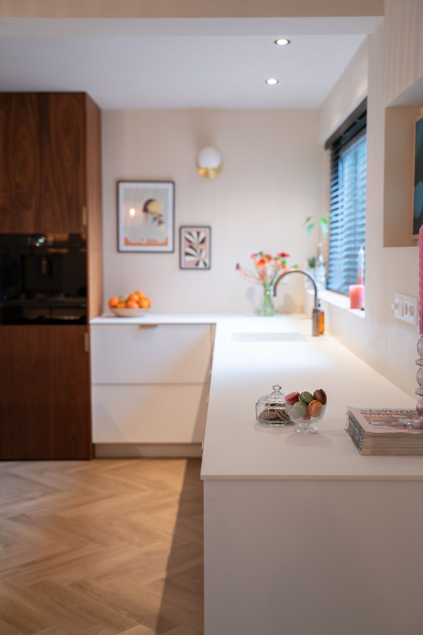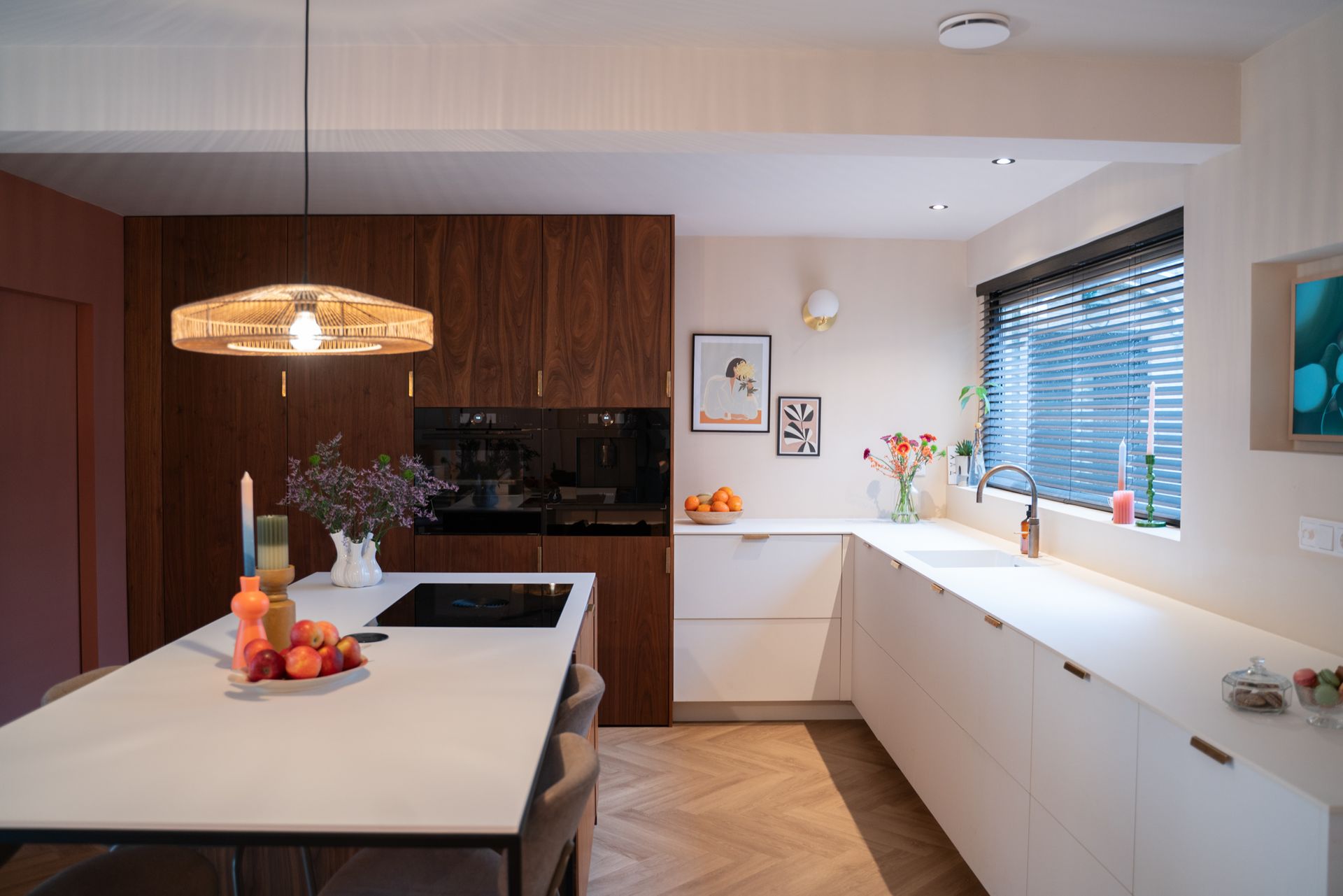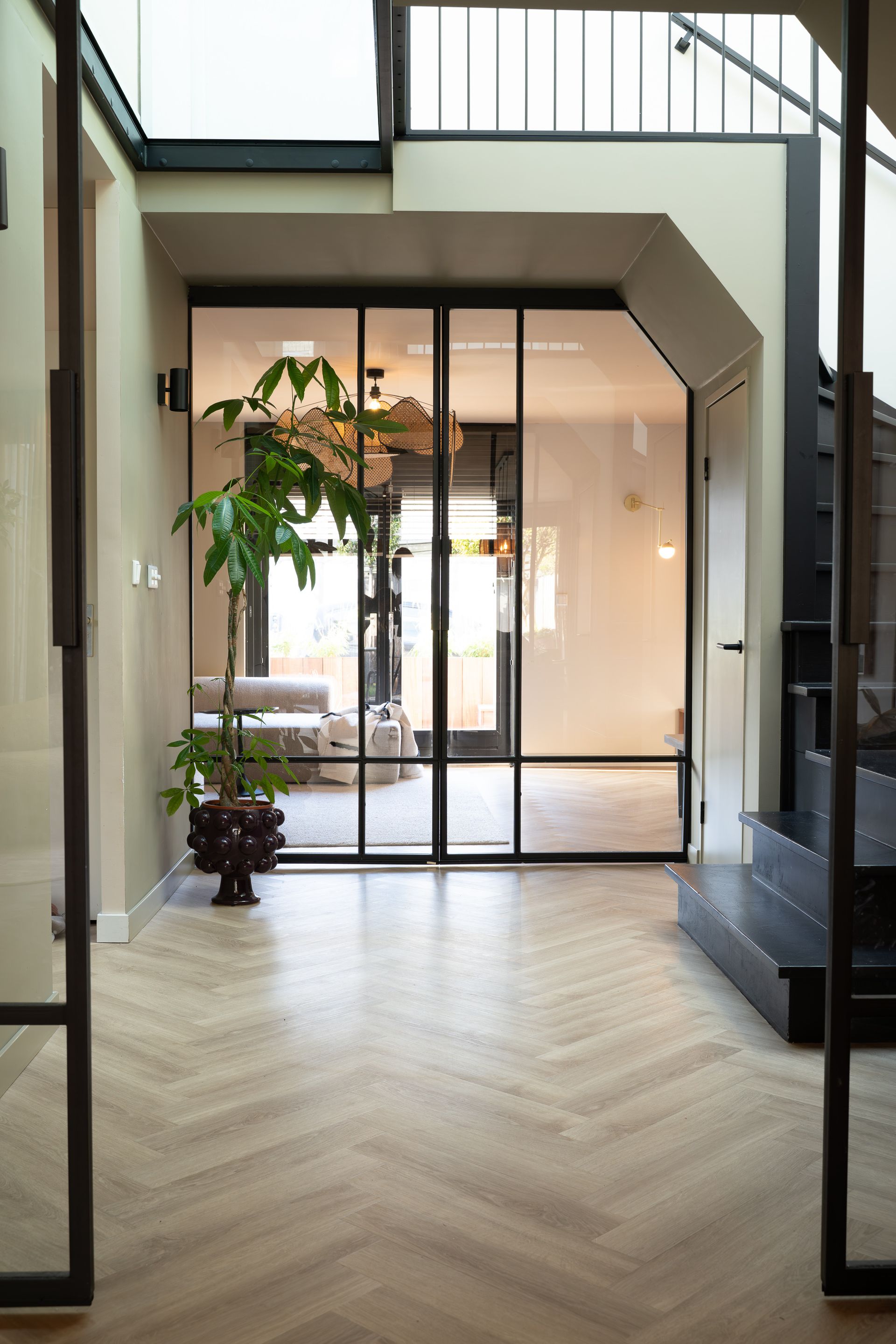 Mijn huis is een ongoing project. In januari 2022 kregen we de sleutel en volgden zes maanden van non-stop verbouwen. Grote ingrepen, zoals de uitbouw aan de tuinzijde, het ombouwen van de garage tot woonruimte (waarbij een stalen constructie nodig was) en het stucwerk, hebben we uitbesteed.