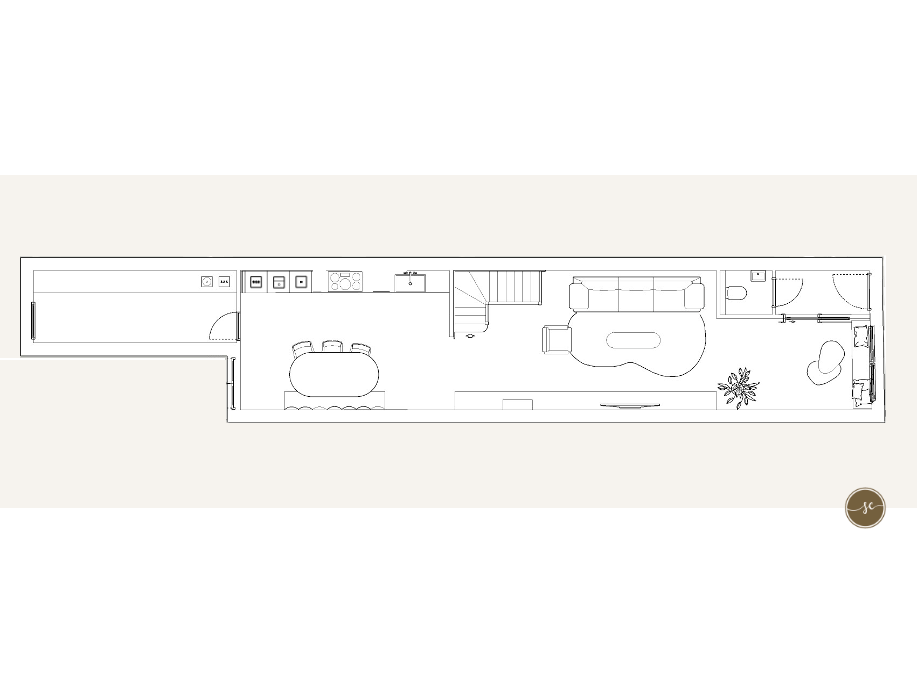 Het ontwerp omvatte maatwerkoplossingen, meubelvoorstellen, een lichtplan, raambekleding en accessoires. Alles is zorgvuldig op elkaar afgestemd om van deze lange, smalle ruimte een warm en samenhangend geheel te maken.