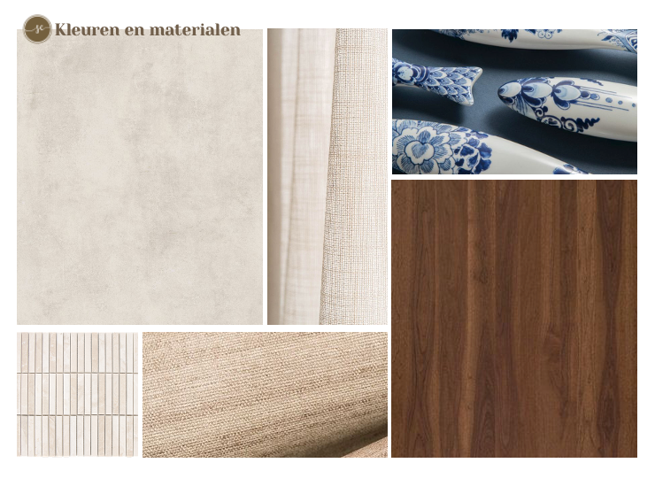 Voor dit karakteristieke huis aan het water in Brielle maakte ik een interieurontwerp voor de benedenverdieping. De wens was om Japandi vibes te combineren met blauwe accenten en een slimme indeling te creëren, passend bij de uitdagende afmetingen van de woning.