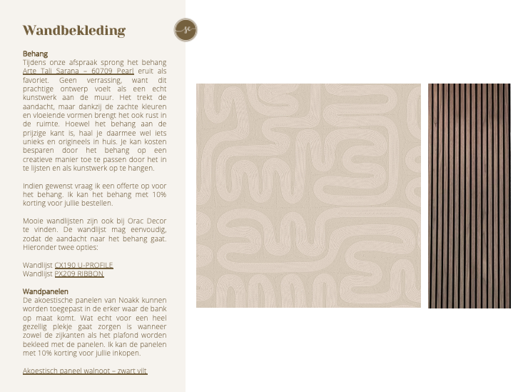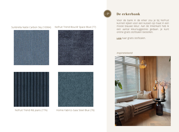 “Wij hadden Hannah ingeschakeld om ons te helpen nadat wij een oud huis hadden gekocht waar alles nog moest gebeuren. Zij gaf ons advies bij de indeling van de benedenverdieping, de locatie van de keuken, het lichtplan, kleuren vd muren, kozijnen, raambekleding, de materialen en suggesties voor de inrichting. Ze luisterde goed naar onze wensen en heeft dit weten te vertalen naar een zeer uitgebreid plan. Het was een hele prettige samenwerking. Het resultaat is een sfeervol en doordacht interieur.”