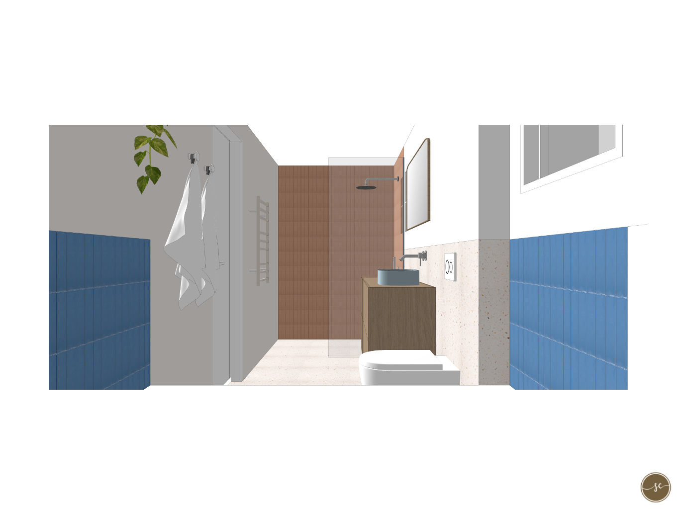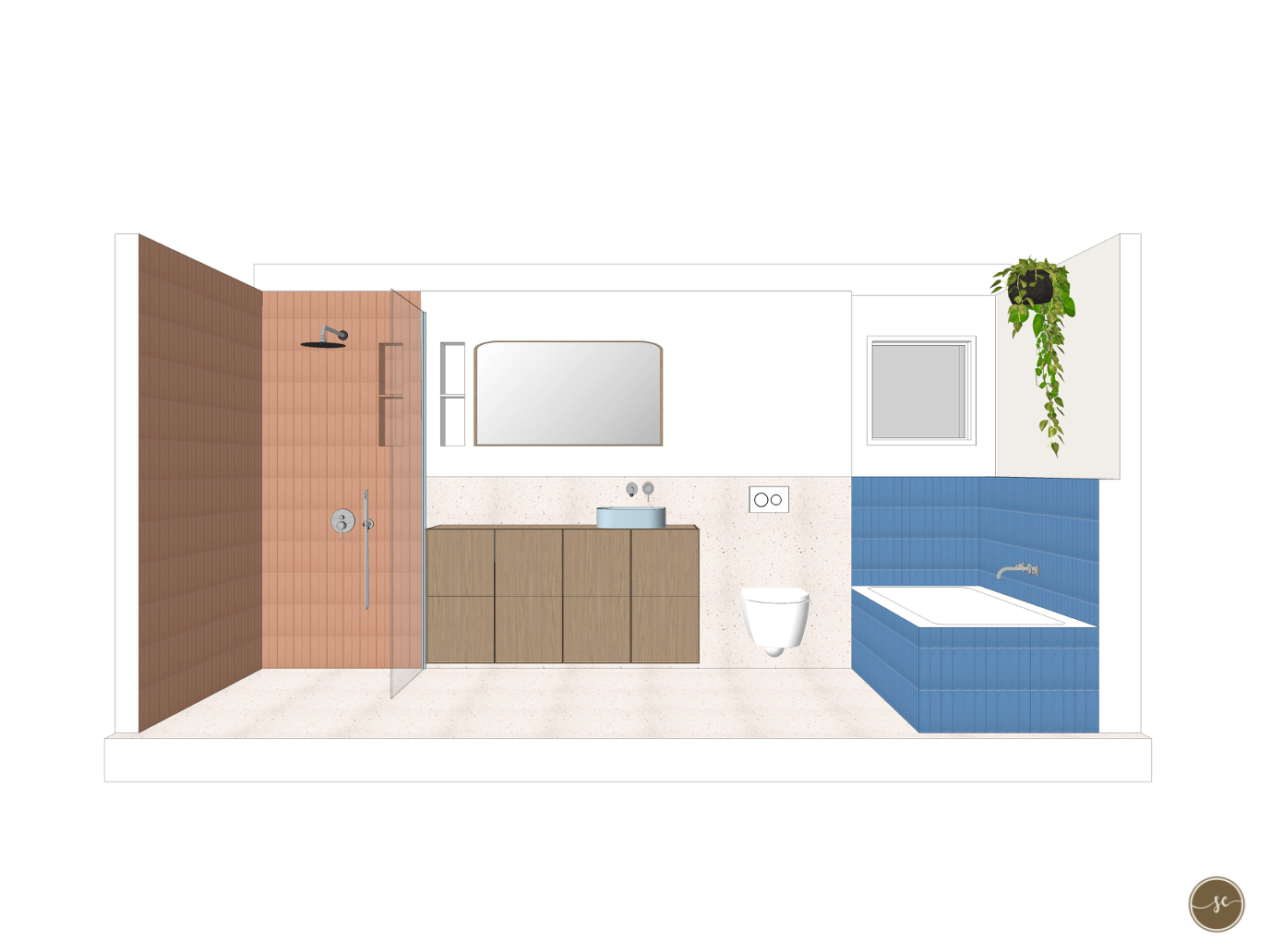 Voor dit project maakte ik een totaalontwerp voor de badkamer, waarbij functionaliteit en esthetiek samenkomen. De wens van de bewoners was een moderne, strakke badkamer met kleur en een frisse uitstraling. Ik startte met het uitwerken van de meest praktische indeling. Vervolgens werden de tegels en het sanitair uitgezocht en werkte ik een passend lichtplan uit om de ruimte optimaal tot zijn recht te laten komen. In het ontwerpproces werd door de bewoners nog lang getwijfeld tussen een gedurfde kleurcombinatie van blauw met terraroze tinten of een meer ingetogen variant waarbij het terraroze plaatsmaakte voor een neutralere kleur. Uiteindelijk is voor die laatste optie gekozen. Foto’s van het frisse en tijdloze eindresultaat volgen binnenkort.